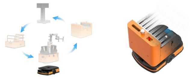 搬運系列叉取機器人負載覆蓋1000kg到3000kg,最高行駛速度可達2m/s, 輕 量化車體設計,配備高容量電池,可依據(jù)需求選擇合適大小的電池,精準需求減少冗余,專為機器人量身設計的車體厚度,大大減少了運行的通道寬度,提升了物料存儲空間。全系列采用環(huán)境輪廓導航方式,持紋理導航, 充分利用環(huán)境信息進行定位,方便部署和實施。